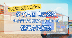 事前にビザの申請は不要であるが、タイデジタル到着カード(TDAC)の事前登録は必須。